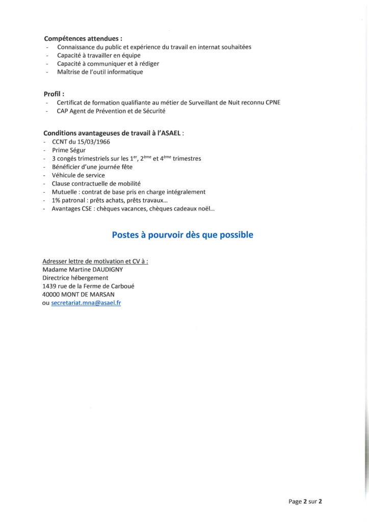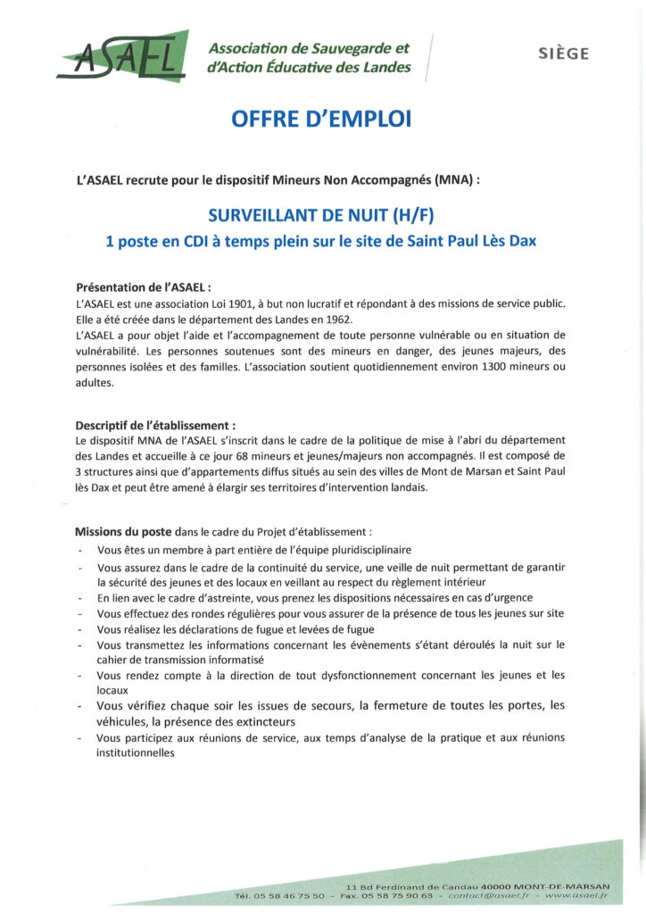 Offre d’emploi Mna Saint-Paul-Lès-Dax